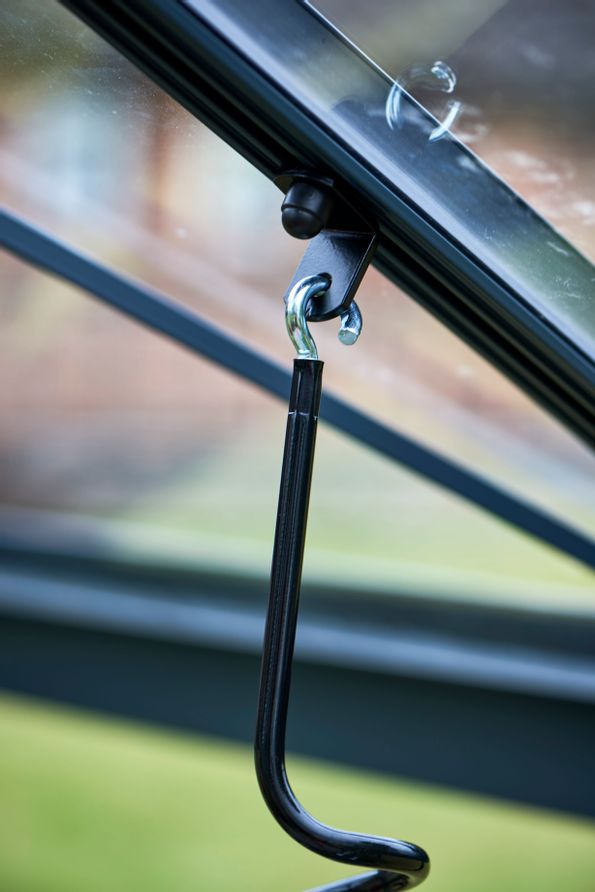 Aluminiumfästen används vid upphängning av t.ex. växter eller vajer i växthus. De monteras enkelt i växthusprofilerna med en T-skruv.
