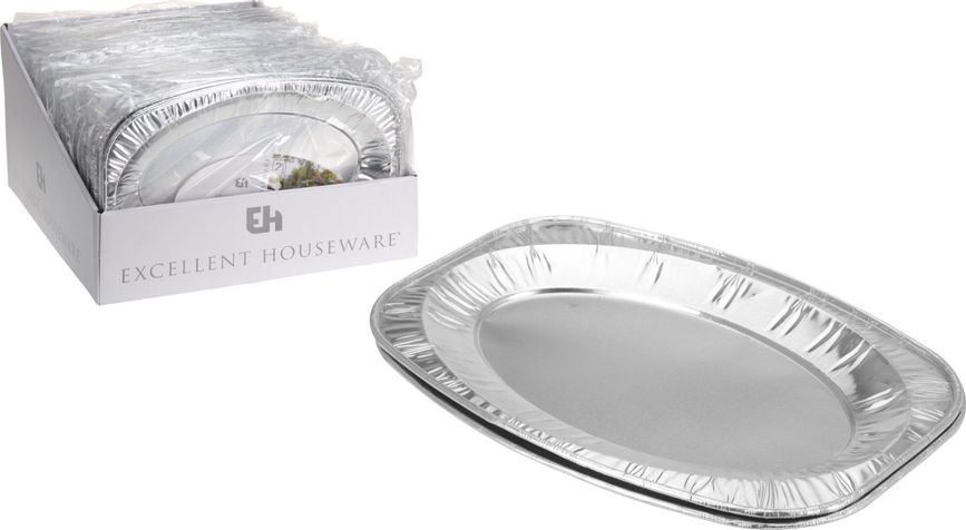 Praktiskt och lätt uppläggningsfat i aluminiumfolie, perfekt för servering, grillning eller catering.