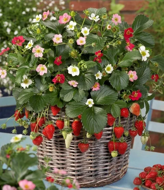 En spännande, verkligt iögonfallande jordgubbe för lådor, amplar och rabatter. Den unika regnbågen av färger innehåller vita, ljusrosa och cerise blommor med stort prydnadsvärde. I slutet av regnbågen belönas du med stora, söta, delikata och doftande frukter.