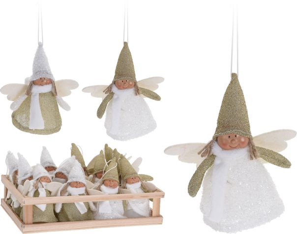 Hängande ängel i guld och vitt.Finns 2 varianter.Ange ev. önskemål om specifik modell i meddelanderuta vid utcheckning.