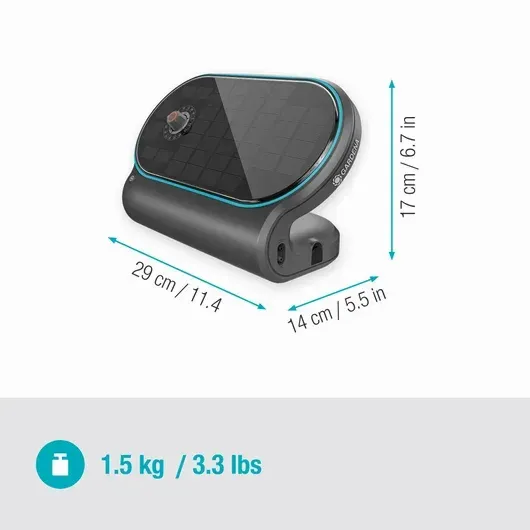 AquaBloom erbjuder en oberoende lösning för automatisk bevattning, idealisk för platser utan tillgång till vatten eller elektricitet. Detta bevattningssystem har en integrerad 3-i-1 huvudenhet som kombinerar en pump, styrenhet och solpanel. Den innovativa designen inkluderar en kombination av solpanel och batteri, vilket säkerställer ett effektivt bevattningssystem, var du än är.