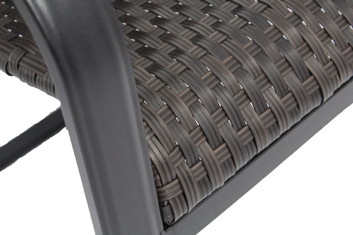Skön och bekväm karmstol med härligt gung som man kan tillbringa långa stunder i. Stolen är tillverkad av cappuccinofärgad slitstark konstrotting och stomme av svart pulverlackerad stål.