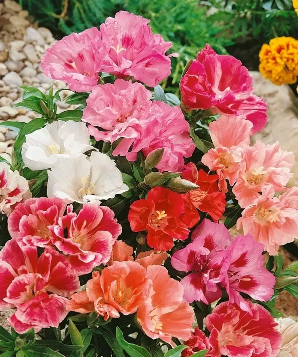 Traditionell sommarblomma med sidenglänsande, enkla blommor i vitt, rosa och rött, vissa med mörkare teckning. Passar för rabatter och buketter. Mycket lättodlad.