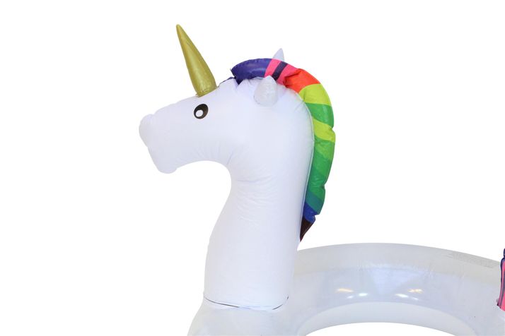Kul uppblåsbar simring som enhörning med glitter inuti.