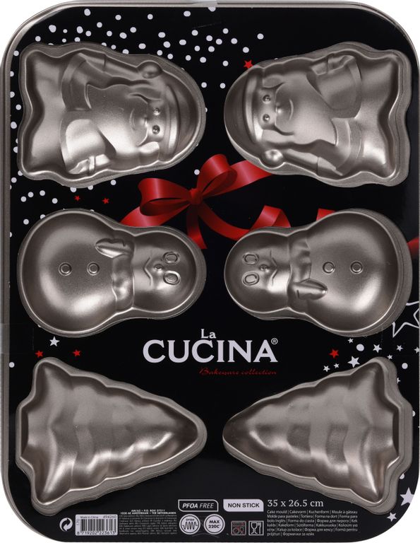 Bakform med olika julmotiv och non stick beläggning.Maxtemperatur i ugn: 220°