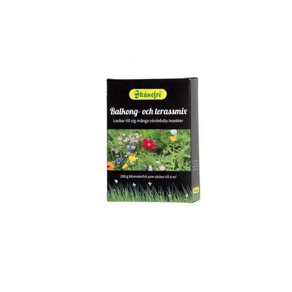 Idealisk 1-årig blomstermix för att skapa vackra fönsterlådor och blomkrukor. Ingående arter klarar den begränsade jordtillgången i blomlådor och krukor bra. Flerfärgad, plantornas höjd ca 50 cm, groningstiden ca 2-3 veckor och vacker färggrann blomning i juni-oktober. Växtperiod 1 år. Innehåller: Rosenkära, Lövkoja, Blomsterlin, Pimpinell, Honungört, Rödklint, Indiankrasse, Gurkört, Sammetstagetes, Ringblomma, Blodklöver, Zinnia, Jätteeternell, Styvmorsviol, Tusensköna, Lavendel, Blåklint, Riddarsporre, Kornvallmo, Sommaraster och Sömntuta. OBS! Produkten innehåller 91% kokosgranulat som hjälper till att få en jämnare spridning av fröerna vid sådd. Sådd: april-juni Räcker till ca 4kvm