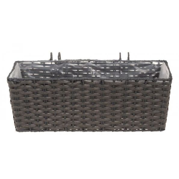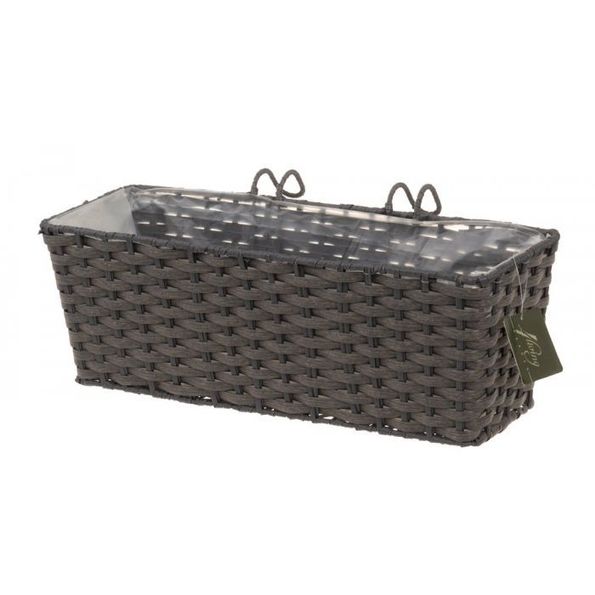 Lätt och slitstark balkonglåda, gjord i fuktbeständig polyrotting.