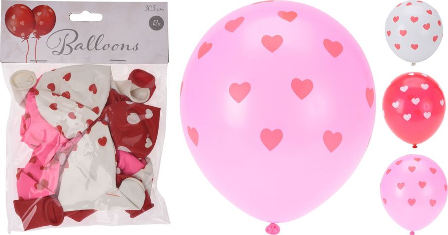 Söta ballonger i mixade färger med hjärtan.