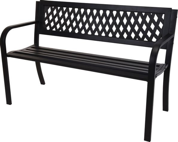 Fin trädgårdsbänk tillverkad av svart pulverlackerad stål.