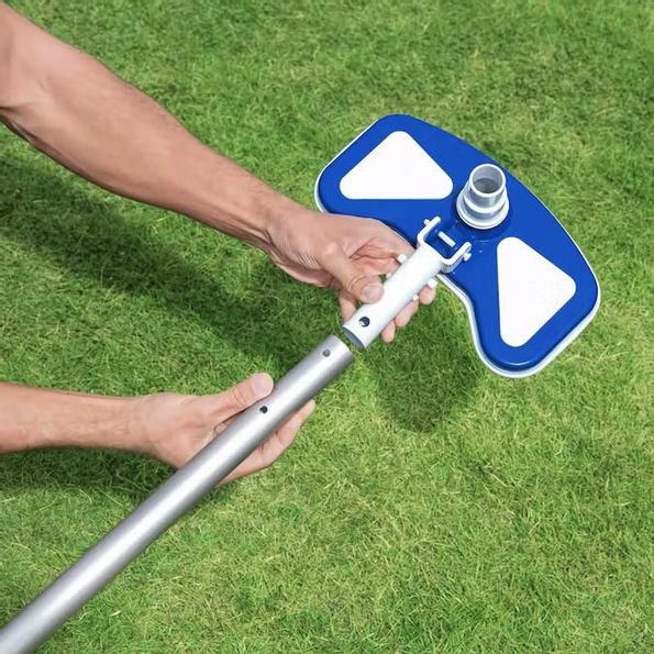 Flowclear Angler är ett smidigt och lätthanterligt vakuummunstycke för städning av poolgolv och poolväggar. Munstycket kan fästas på alla skaft och teleskophandtag med en diameter på 30 mm. Vakuummunstycket ansluter du direkt till poolens filterpump. Skräpet sugs in i en avtagbar och återanvändbar skräppåse som är lätt att tömma (ingår ej). Dammsugarmunstycket har även ett borsthuvud som hjälper till att skrubba bort mer krävande, ingrodd smuts. Inga verktyg krävs för montering. Observera att skaft, vakuumslang och skräppåse inte ingår i denna produkt.