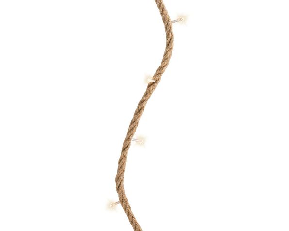 Juterep med belysning. 10 cm mellan lamporna. Det går inte att byta ut lamporna i slingan. Drivs av 3 x AA-batteri. (Ingår ej)
