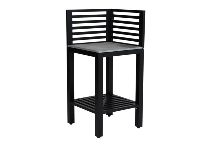 Bellac hörn är tillverkad i svart pulverlackerad aluminium med bänkskiva i granit. Alla moduler har en partisk avställningsyta undertill som gör förvaring enkel. Benen går att ställa i olika höjd, vilket gör det möjligt att ställa utekök på en ojämn yta. Arbetshöjd 86 cm.