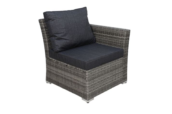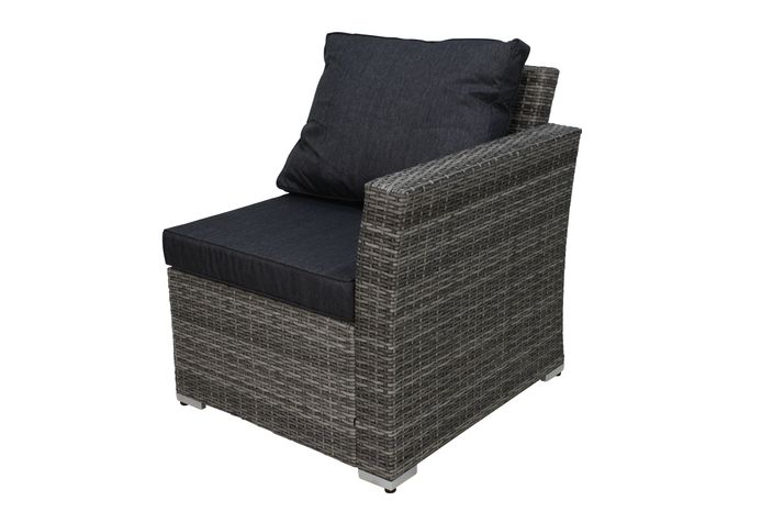 Vänster hörndelen har 10 cm tjocka dynor och lutning i ryggen för extra skön komfort. Dynor ingår i vattenavvisande mörk granitfärgad polyester.