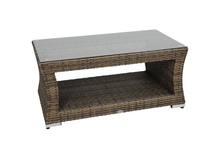 Bellis natur soffbord M, i 8 mm bred, naturfärgad, slitstark konstrotting. Bordsskivan är i transparent tempererat glas.