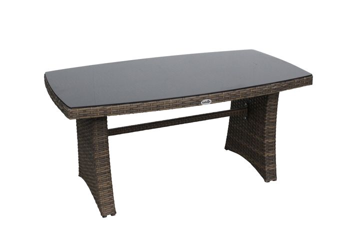Bellis natur soffbord S, i 8 mm bred, naturfärgad, slitstark konstrotting. Bordsskivan är i 5 mm tempererat glas.