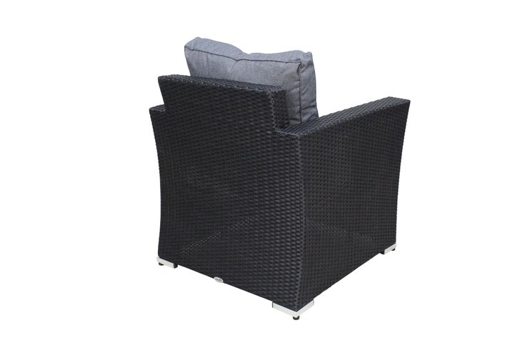 Fåtöljen har 10 cm tjocka dynor och lutning i ryggen för extra skön komfort. Dynor ingår i vattenavvisande granitfärgad polyester.