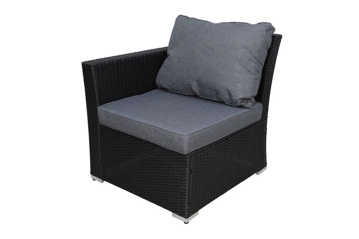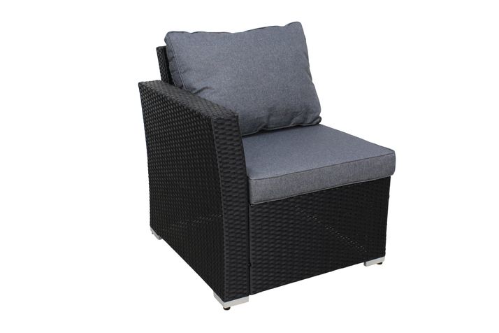 Höger hörndelen har 10 cm tjocka dynor och lutning i ryggen för extra skön komfort. Dynor ingår i vattenavvisande granitfärgad polyester.