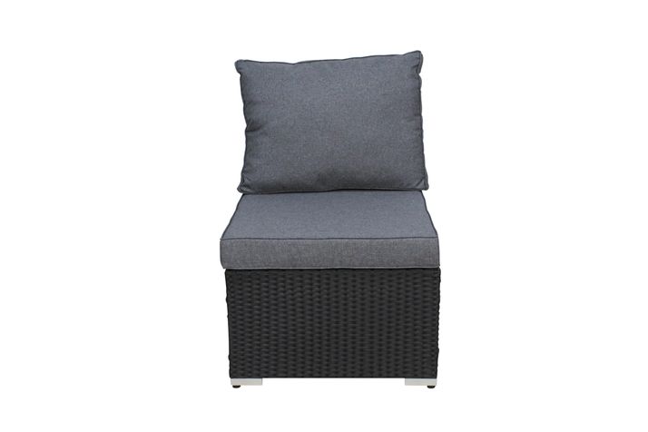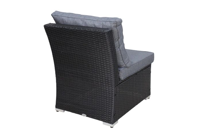 Mittdelen har 10 cm tjocka dynor och lutning i ryggen för extra skön komfort. Dynor ingår i vattenavvisande granitfärgad polyester.