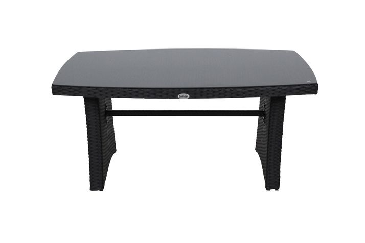 Bellis svart soffbord S, i 8 mm bred, svart, slitstark konstrotting. Bordsskivan är i 5 mm tempererat glas.