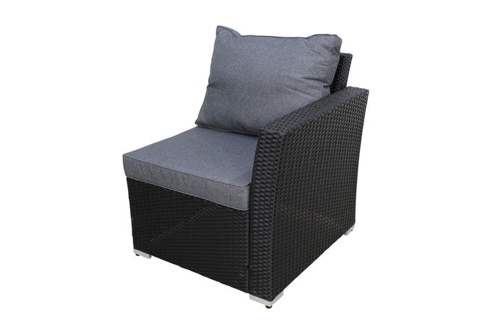 Vänster hörndelen har 10 cm tjocka dynor och lutning i ryggen för extra skön komfort. Dynor ingår i vattenavvisande granitfärgad polyester.