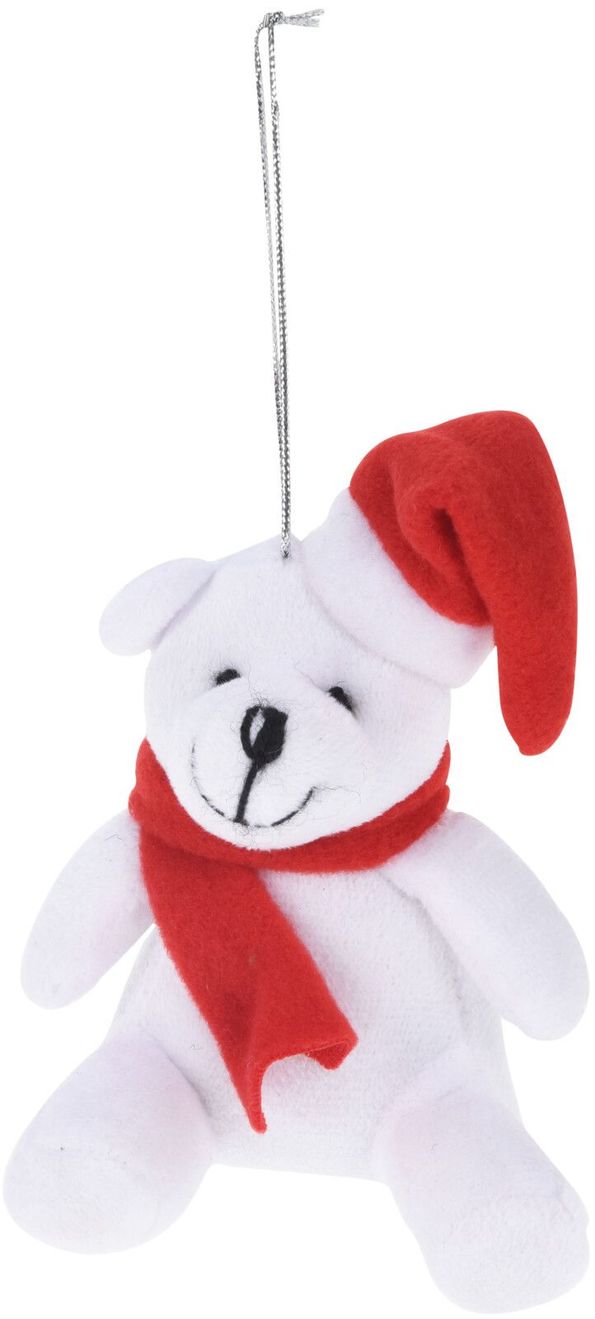 Hängande nalle med tomteluva.