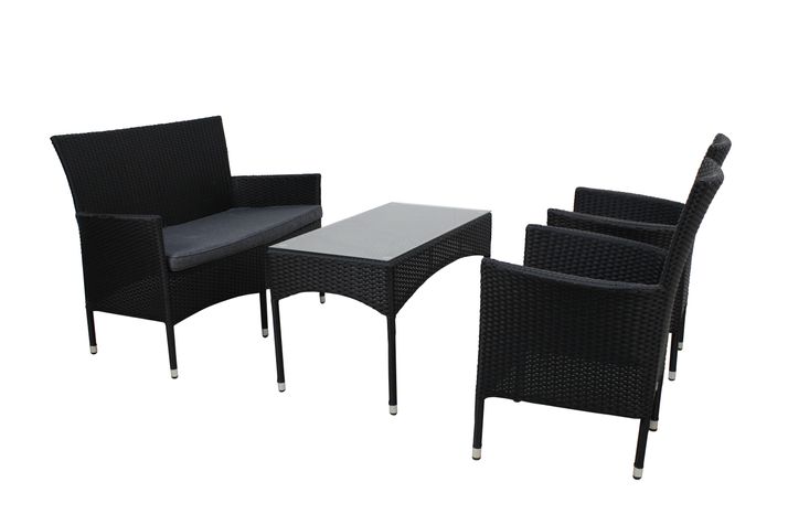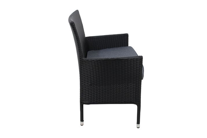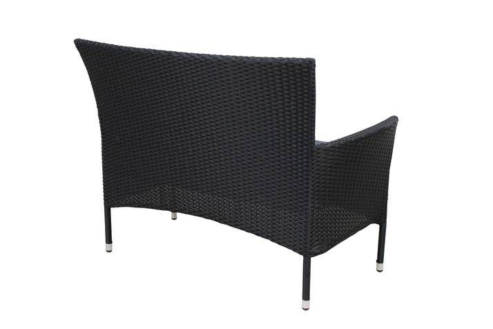 2-sitssoffa i 5 mm bred, Svart, slitstark konstrotting. Stomme är av kraftig aluminium. Dynor ingår i Mörk Granit. Denna soffa är stapelbar.