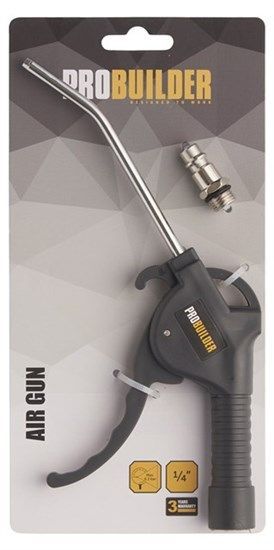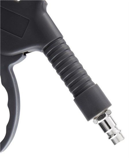 Blåspistol med vinklat blåsrör. Metallgänga inuti för att montera kontakten.