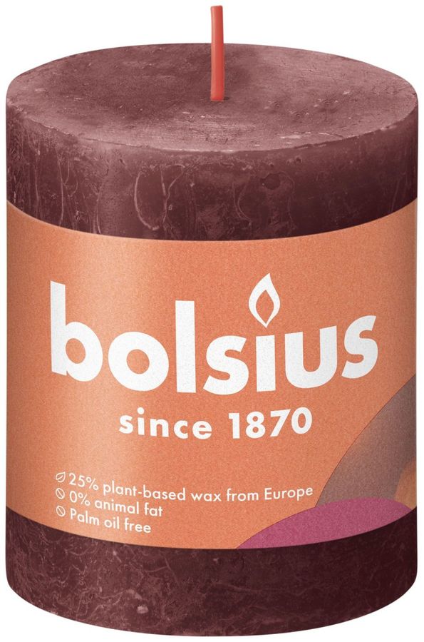 Bolsius rustika blockljus som kommer i den vinröda tonen Velvet Red stoltserar med en höjd på hela 8 cm och brinner i drygt 35 timmar.