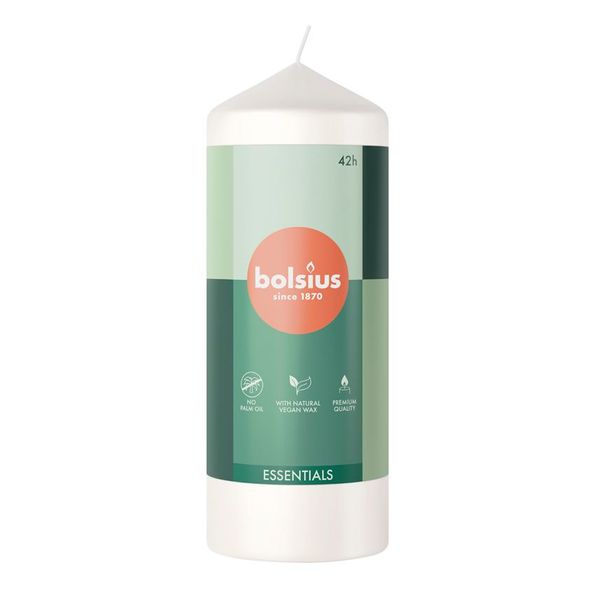 Bolsius släta blockljus i färgen Cloudy White med en brinntid i upp till 42 timmar. Från essentails kollektionen som framställs med kärlek och omtanke om människorna och planeten av naturligt veganskt vax samt med palmolja. Den klara färgen Cloudy White skapar en fräsch känsla och en riktig grundfärg som smälter in bra med alla andra toner i Bolsius kollektion.