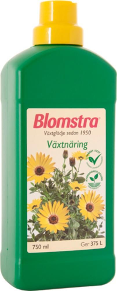 Blomstra flytande växtnäring är en produkt utvecklad via forskning vid Sveriges Lantbruksuniversitet. Blomstra växtnäring är balanserad på rätt sätt. Mineraler, spårämnen och näringsämnen har exakta proportioner som är noga avvägda, allt för att växterna skall få ett långt, friskt och vackert liv! Blomstra flytande växtnäring är till för gröna och blommande plantor, både inomhus och utomhus. Växter mår bäst av regelbunden gödning. Dosering: 2 ml per liter vatten. Innehåll: 750 ml räcker till 375 liter bevattningsvatten.