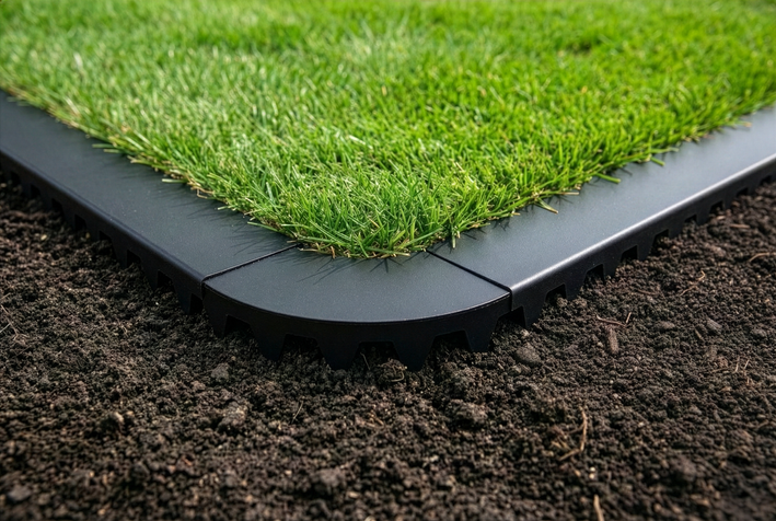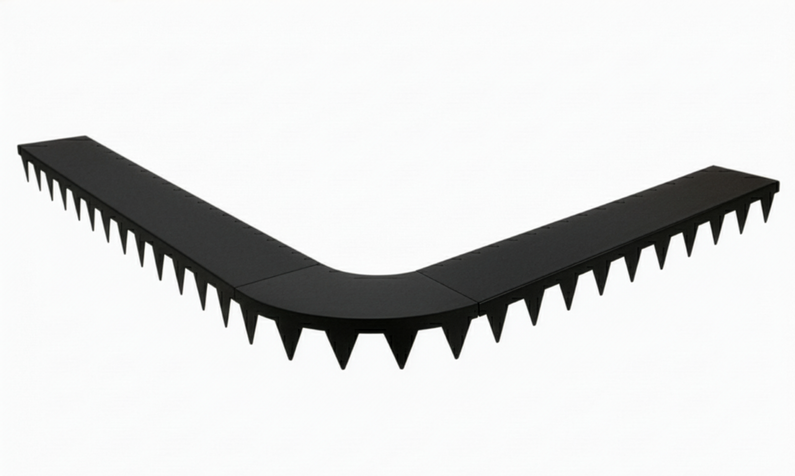 Trött på att trimma? Med vår nya smart gräskantlist med kraftiga tänder som är skapad för att minimera jobb i trädgården, sparar du timmar av arbete eftersom du enkelt kan köra gräsklipparen raktöver eller varför inte placera signalkablen för din robotklippare under plattan. Gräskantlisten är tillverkad av 1,2 mm cortenstål vilket gör den väldigt tålig. Du kan enkelt montera ihop obegränsat med längder och olika svängar och böjar för att täcka hela behovet (skruv ingår). Finns i obehandlad och svart pulverlackard UV-beständig färg (RAL9005). Tänder H7 cm. I samma serie finns även trädringa i olika storlekar och färger.