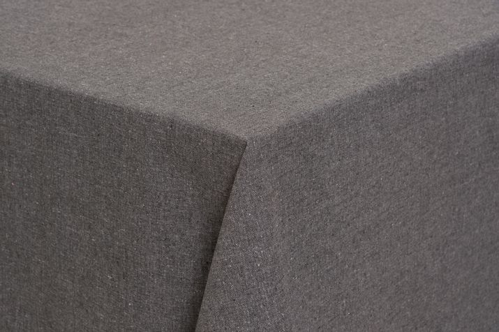 Fin mörkgrå bordsduk i 80% bomull och 20% polyester.