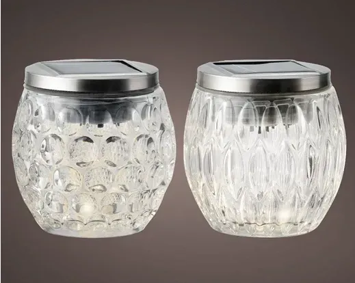 Ljuslykta av glas med varmvitt sken som drivs av solceller.