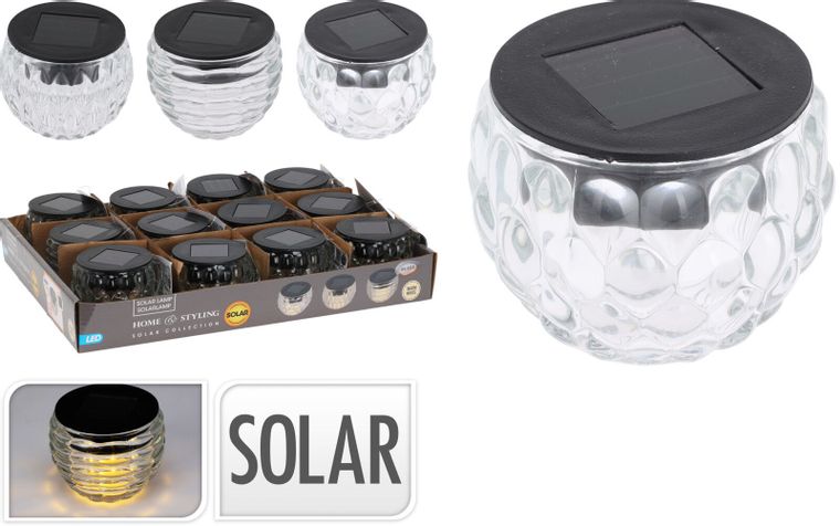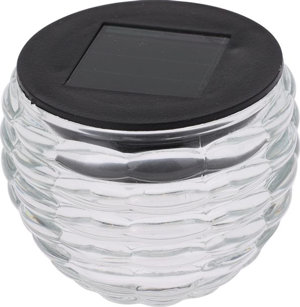 Ljuslykta av glas med varmvitt sken som drivs av solceller.