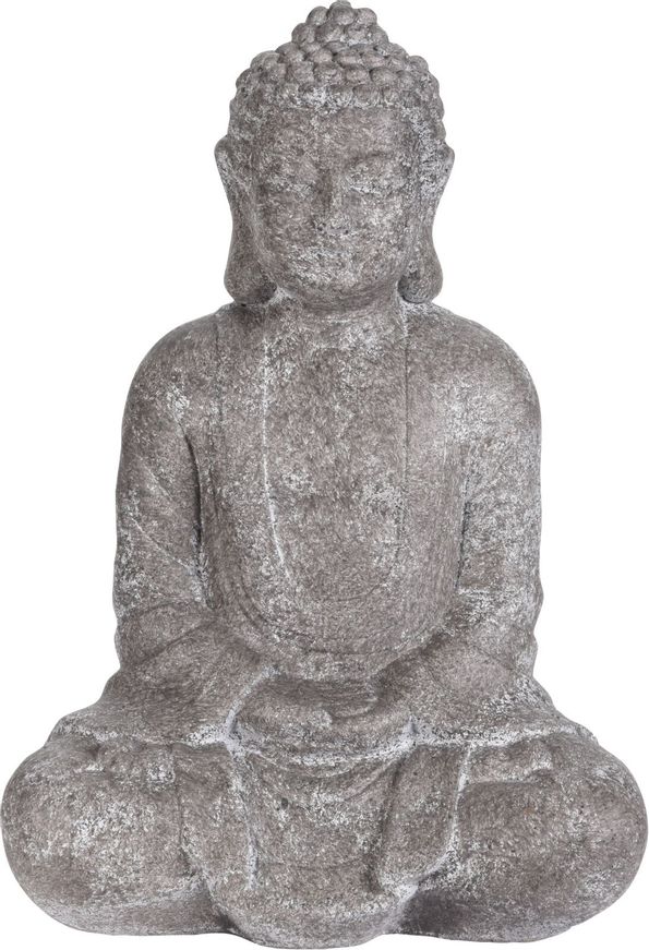 Buddha sittande är en vacker staty i en antik look att ha i trädgården eller på balkongen.