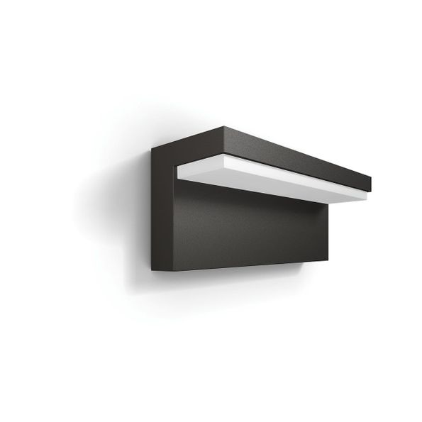En vacker L-formad lampa. Den minimalistiska Philips Bustanvägglampan i högkvalitativ antracitgrå aluminium sprider varmvitt LED-ljus över väggen.