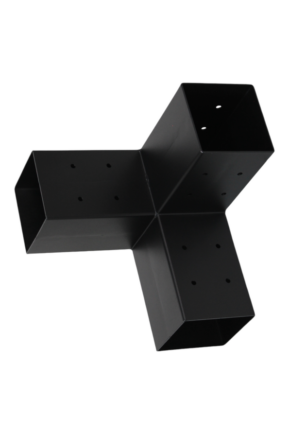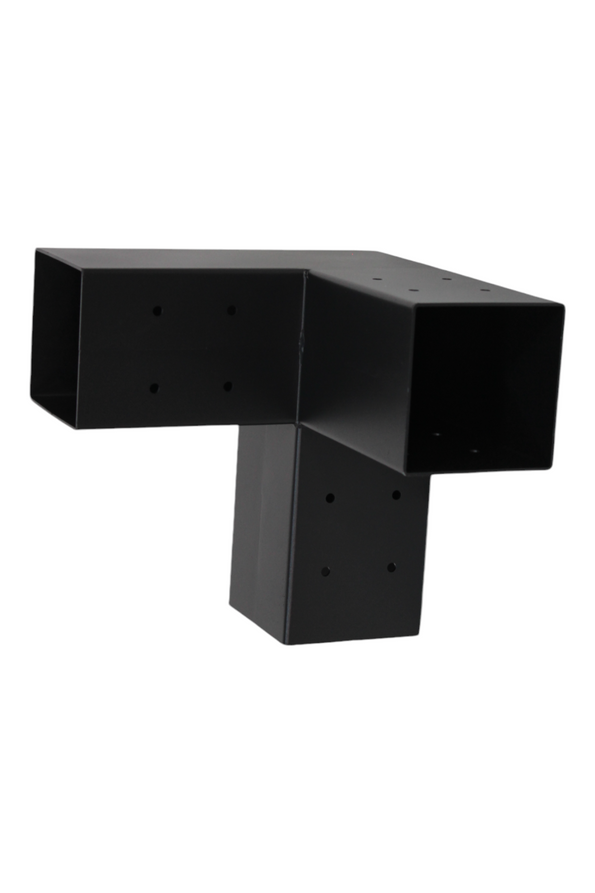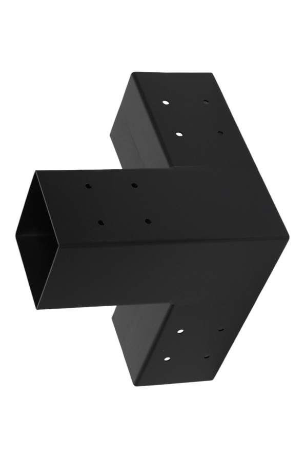 Byggbeslag i svart pulverlackerat stål passar för virke 95×95 mm.