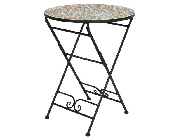 Dekorativt cafébord med bordsskiva i porslinsmosaik.