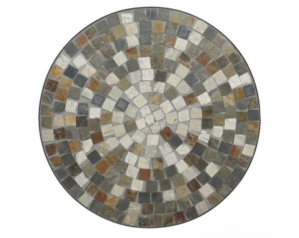 En vacker och dekorativ ihopfällbar caféstol med sits i stenmosaik.
