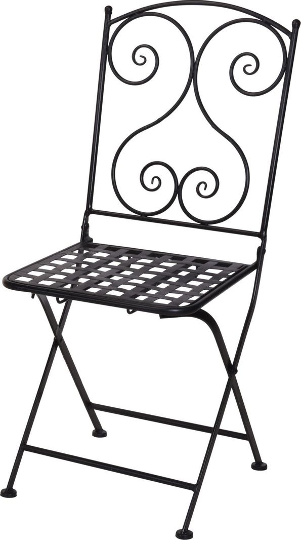 En vacker och dekorativ ihopfällbar caféstol. Ramen är i svart, pulverlackerad metall.