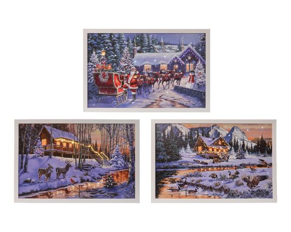 Canvastavla i 3 olika modeller med 8 LED lampor.Drivs av: 3 x AA batteri. (Ingår ej)Ange ev. önskemål om specifik modell i meddelanderuta vid utcheckning.