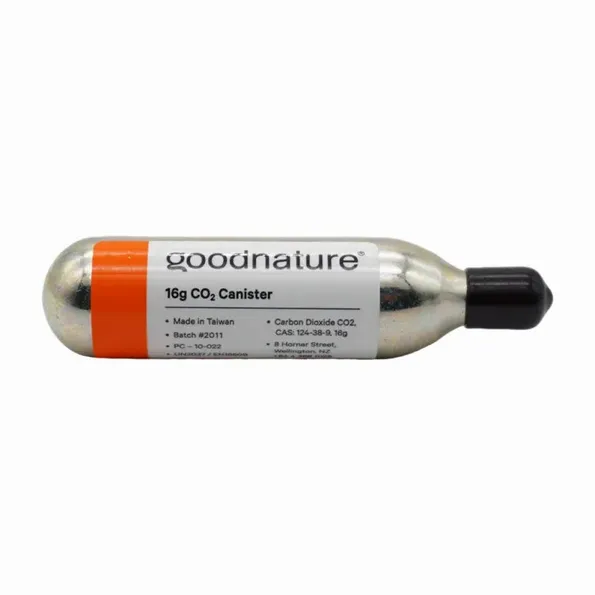 Kolsyrepatronen är flamsäker och tillverkad i återvinningsbar metall.