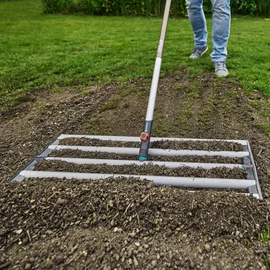 Dressrakan har en arbetsbredd på 76 cm, vilket gör att du snabbt kan fördela jord eller sand – oavsett om du anlägger en ny gräsmatta, sanddressar befintligt gräs, använder den efter vertikalskärning eller jämnar ut ytor. Med sina många användningsområden är detta flexibla verktyg ett värdefullt tillskott i varje trädgård- eller gräsvårdsutrustning.