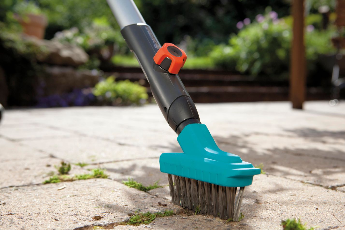 GARDENA combisystem fogborste M är idealisk för enkel borttagning av mossa från fogar och längs trädgårdsmurar. GARDENA combisystem möjliggör flexibel användning tack vare de utbytbara tillbehören. Fogborsten är kompatibel med alla GARDENA combisystem-skaft och kan monteras och fästas direkt på skaften. GARDENA rekommenderar ett skaft med en längd på 130 cm eller 150 cm, valet av skaft beror på arbetsuppgiften och kroppslängd. Den säkra anslutningen mellan borste och skaft säkerställer bekvämt arbete.
