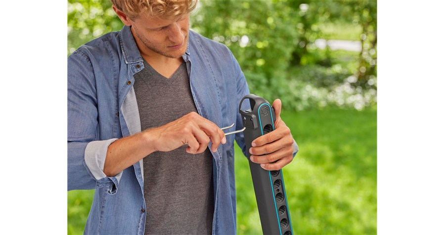 Med GARDENA combisystem Redskapslist Flex kan du skapa utrymmesbesparande förvaring för dina GARDENA combisystem-tillbehör och handtag. Combisystem redskapslist Flex är utrustad med fyra verktygshållare inklusive en krok för förvaring av mindre verktyg som sekatörer och saxar, samt en universalkrok. Verktygshållarna är flexibla och du kan rotera dem i steg om 30 grader för att justera deras position efter dina behov. Hållarna är lämpliga för förvaring av ditt GARDENA combisystem och Original GARDENA System-tillbehör.