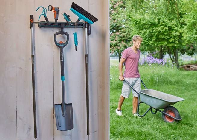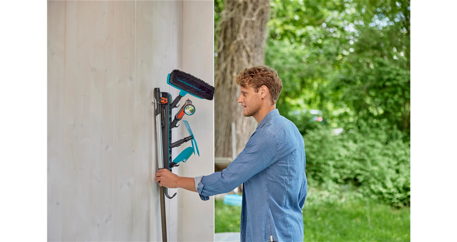 - Användning: Utrymmesbesparande förvaringslösning för combisystemverktyg och handtag. Även för original GARDENA-systemanslutningsverktyg, sekatör och sax
