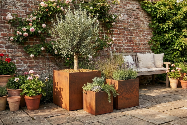 Solhagas serie av snygga och frosttåliga utekrukor tillverkade av kraftigt cortenstål. Finns i flera olika storlekar och färger. Lämpar sig för så väl vanliga villaträdgården som på offentliga platser. Denna kruka är tillverkad av obehandlad 1,5 mm cortenstål.