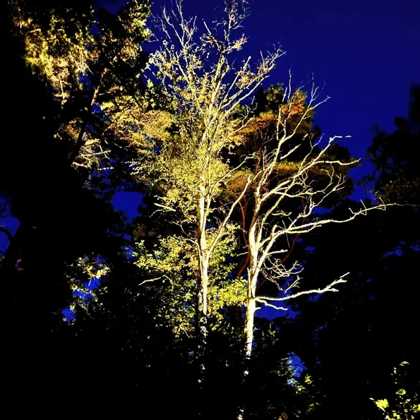 Den kraftfulla markspotten Cosmo är byggd för att erbjuda stora och höga träd ordentligt med ljus. Den lite smalare spridningsvinkeln gör att ljuset når längre och ändå, på lite avstånd, kan breda ut sig över en trädkrona.