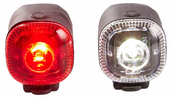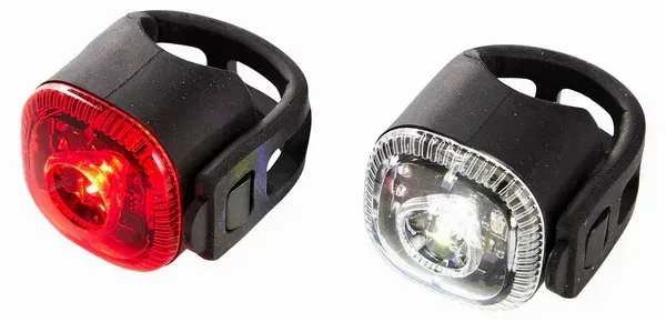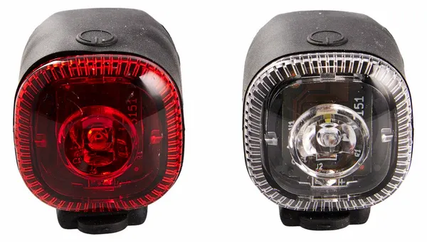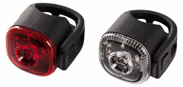Smidiga cykellampor för fram och bak, som kan monteras med den inbyggda remmen.