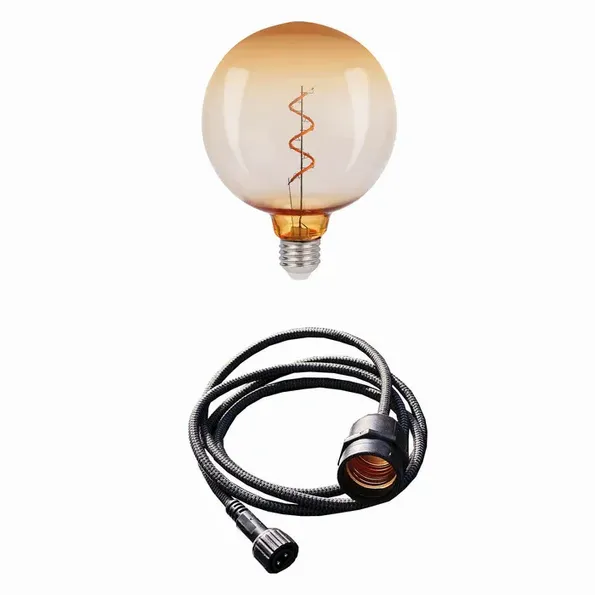 Ljuskällan DecoXL (vintage) & den vävda tygsladden Gravity (150cm) blir till en vacker vädertålig pendellampa, perfekt för pergolan eller uteplatsen. Paketet innehåller en ljuskälla och en sladd.